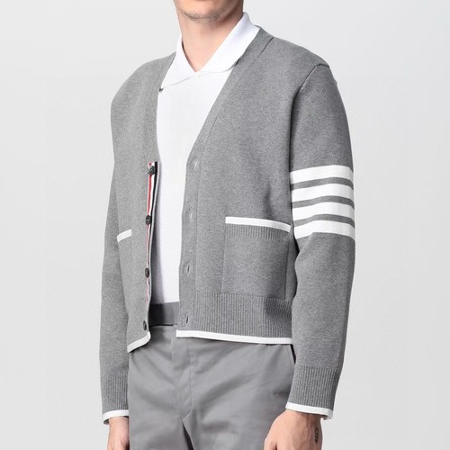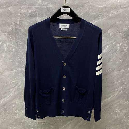 Thom Browne 톰브라운 TB 스트라이프 배색 브이넥 코튼 가디건
