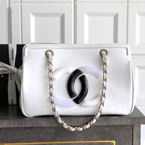 CHANEL 샤넬 CC로고 래커 카우하이드 토트백