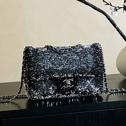 샤넬 퀼팅 시퀸 실버메탈 이브닝 플랩백 25CM #AS4298
