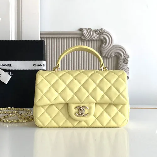 샤넬 CF 뉴미니 램스킨 내장칩 탑핸들 금장 20CM #AS2431