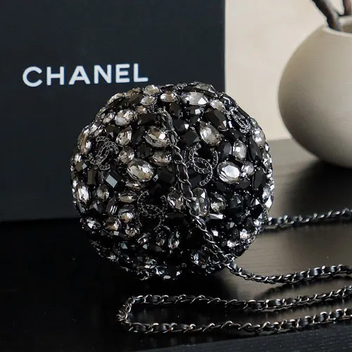 Chanel 스와로브스키 크리스탈 다이아몬드 볼 클러치 블랙 13CM