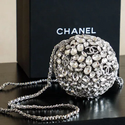 Chanel 스와로브스키 크리스탈 다이아몬드 볼 클러치 실버 13CM