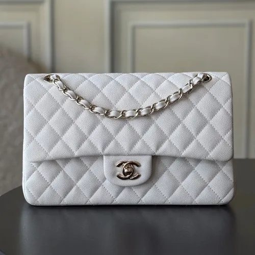 Chanel 샤넬 클래식 플랩백 CF 1112 화이트 Haas 캐비어 카프스킨 (업그레이드 버전)금장