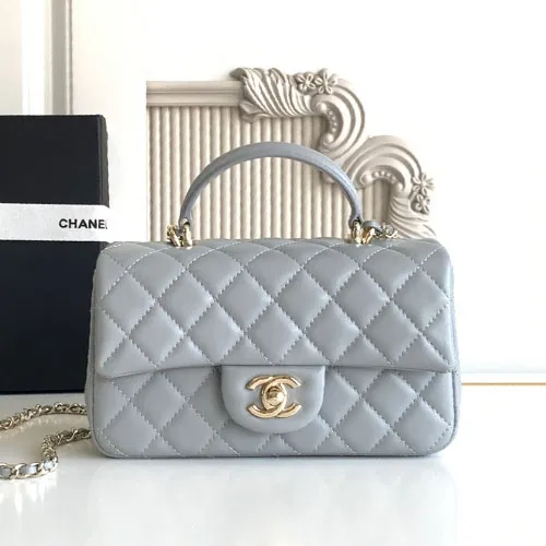 샤넬 CF 뉴미니 램스킨 내장칩 탑핸들 그레이 금장 20CM #AS2431