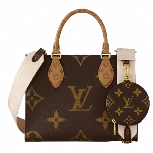 루이 비통 온더고 PM 토트백은 모노그램 리버스 캔버스와 모노그램 자이언트 패턴이 조화롭게 어우러져 시각적인 대비를 이루는 디자인이 특징입니다. 클래식한 모노그램 패턴에 현대적인 감각을 더한 이 가방은 토론 핸들과 브랜드 로고가 새겨진 자카드 직물 숄더 스트랩으로 구성되어 다양한 스타일 연출이 가능합니다.