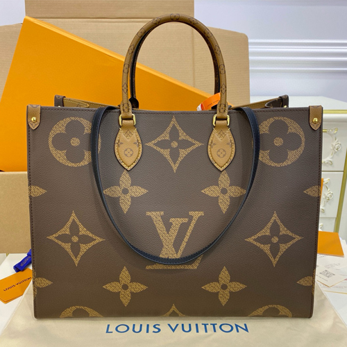 루이비통 온더고 자이언트 모노그램 토트백은 모노그램 자이언트 캔버스 소재로 제작되어 시선을 사로잡는 대담한 디자인이 특징입니다. 가방의 측면과 토론(Toron) 핸들에는 모노그램 리버스 패턴이 적용되어, 클래식한 모노그램 패턴과 대비를 이루며 색상과 질감의 미묘한 변화를 선사합니다. 이처럼 루이비통의 아이코닉한 모노그램을 현대적으로 재해석한 디자인은 어떤 룩에도 세련된 포인트를 더해줍니다.