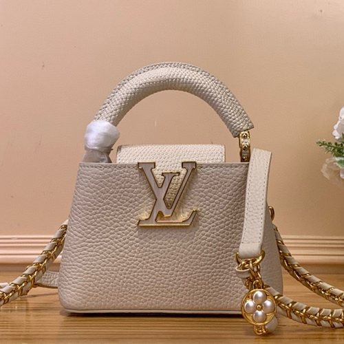 Louis Vuitton 루이비통 Capucines Nano 핸드백 M25611 화이트 / 소가죽+뱀피패턴+진주장식