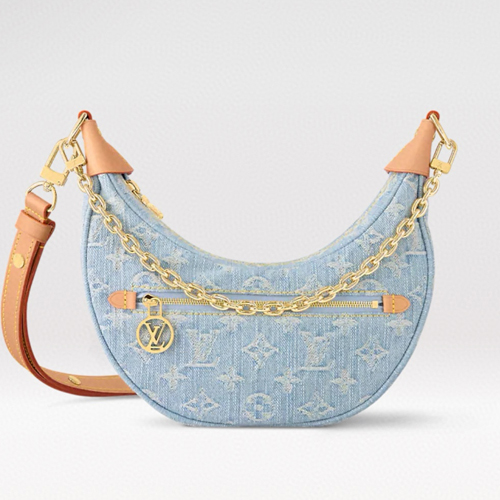 루프 스몰 백은 2021년 가을/겨울 컬렉션에서 선보인 아이템으로, 루이비통의 상징적인 모노그램 데님 소재를 활용하여 현대적인 감각을 더했습니다. 반달 모양의 독특한 실루엣과 골드 톤 체인 스트랩이 조화를 이루어 세련된 분위기를 연출합니다.