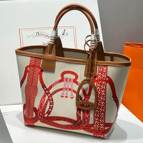 Hermes 에르메스 스티플 토트 쇼퍼백 캔버스 & 레더 28CM 핫핑크
