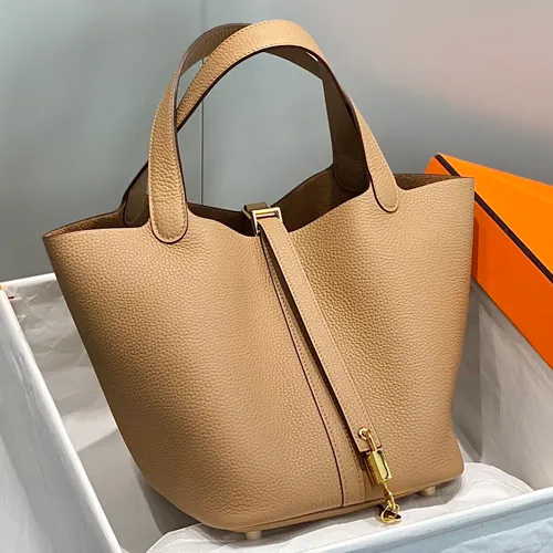 Hermes 에르메스 버킷백 피코틴 락 22 클라망스가죽 브라운 금장