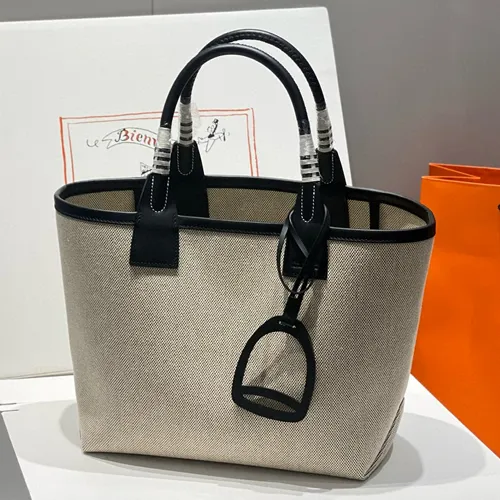 Hermes 에르메스 스티플 토트 쇼퍼백 캔버스 & 레더 28CM 무지 블랙