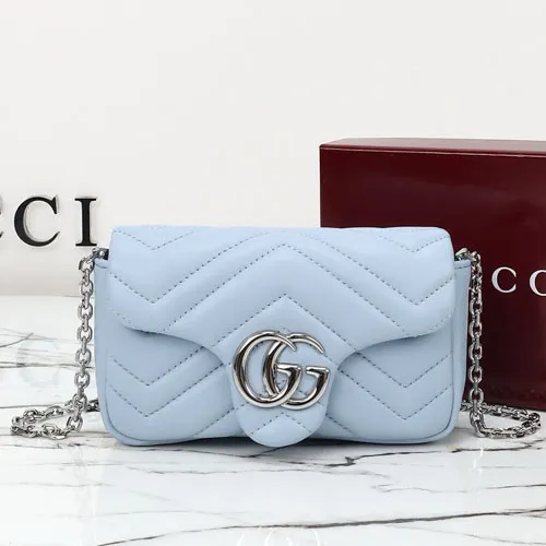GUCCI 구찌 GG 마몬트 미니 체인 숄더 크로스백 라이트블루