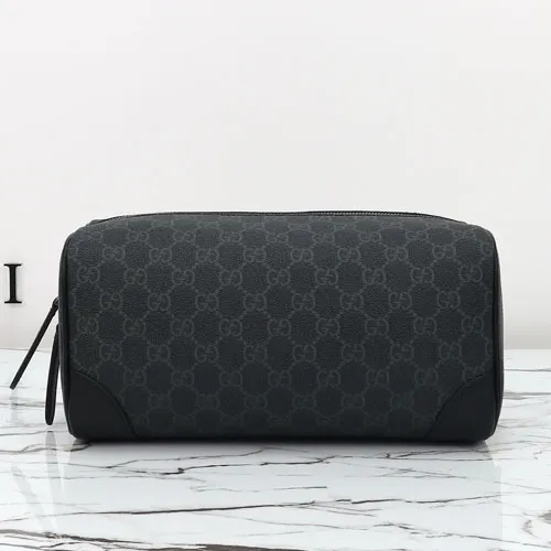 GUCCI GG 엠블럼 가죽 트리밍 모노그램 코팅 캔버스 세면백 페칭 FETCHING