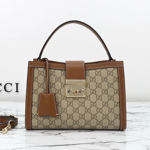 GUCCI 패드록 미디엄 탑 핸들 베이지 브라운 GG #838992