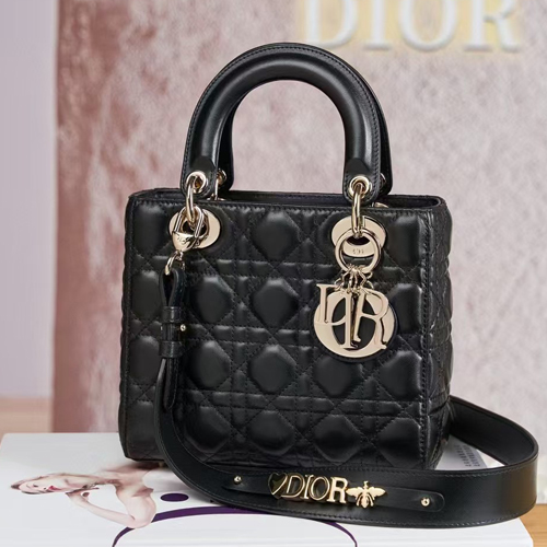 Lady Dior My ABCDior 핸드백은 디올의 우아함과 아름다움을 완벽히 구현한 대표적인 디자인입니다. 부드러운 양가죽으로 정교하게 제작되었으며, 깔끔한 카나주 퀼팅 스티치가 특징입니다. 은은한 금빛 하드웨어와 D.I.O.R. 펜던트가 세련미를 더하며, 작지만 고급스러운 존재감을 자랑합니다. 어깨 스트랩에는 커스터마이즈 가능한 이니셜 장식이 포함되어 개성을 표현할 수 있으며, 손에 들거나 크로스로 착용이 가능합니다.