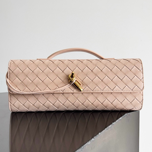 Bottega Veneta Andiamo 이브닝 클러치는 브랜드의 시그니처 인트레치아토 위빙(Intercciato Weaving) 디자인으로 제작된 고급 가죽 클러치백입니다.