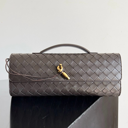 Bottega Veneta Andiamo 이브닝 클러치는 브랜드의 시그니처 인트레치아토 위빙(Intercciato Weaving) 디자인으로 제작된 고급 가죽 클러치백입니다.