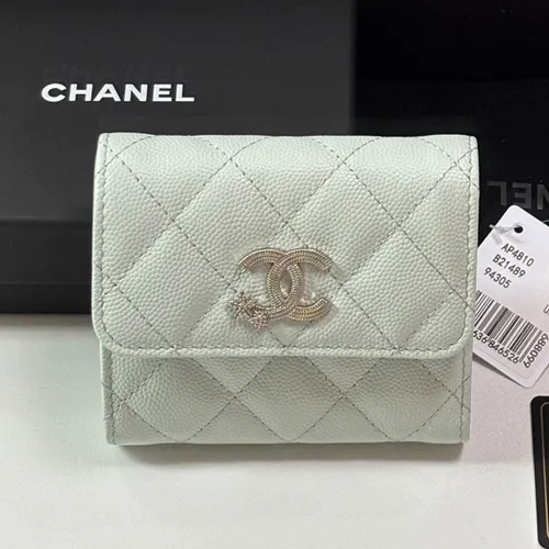 Chanel 샤넬 클래식 삼단 반지갑 AP4810 라이트민트 (캐비어 가죽)