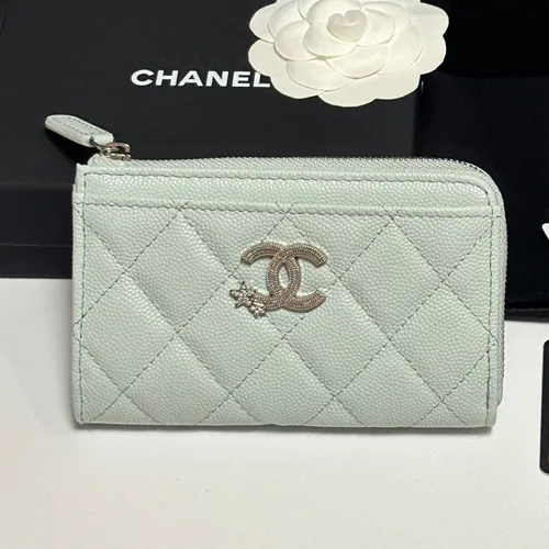 Chanel 샤넬 클래식 지퍼 카드지갑 3732 라이트민트 (캐비어 가죽)