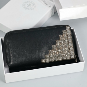 실물 받고 나서 가죽 질감이 생각보다 부드러워서 놀랐어요. 크롬하츠 특유의 스터드 장식이랑 에르메스 감성이 잘 섞여서 묵직한 느낌이 나네요^^ 지퍼 여닫을 때도 부드럽고 수납공간도 넉넉해서 실용적입니다. 다만 금속 장식이 있어서 약간 무게감은 있어요 ㅎㅎ 그래도 마감 깔끔하고 오래 들고다닐 지갑 같아요~