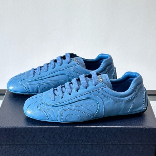 Prada Montecarlo 남성 로우컷 스니커즈는 고급 나파 가죽으로 제작되어 부드럽고 내구성이 뛰어난 제품입니다. 레이싱 슈즈에서 영감을 받은 유선형 디자인과 낮은 프로파일의 실루엣이 특징이며, 복고적이면서도 현대적인 감각을 살렸습니다.
