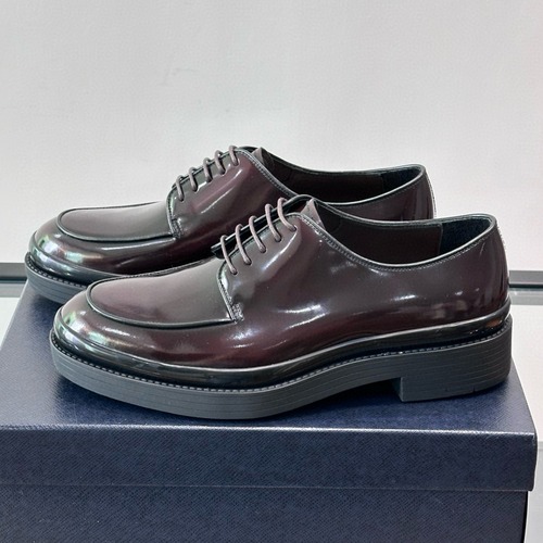 Prada의 더블 몽크스트랩 구두로, 고급 소가죽(페이턴트 레더)을 사용하여 광택감과 질감이 뛰어난 제품입니다.