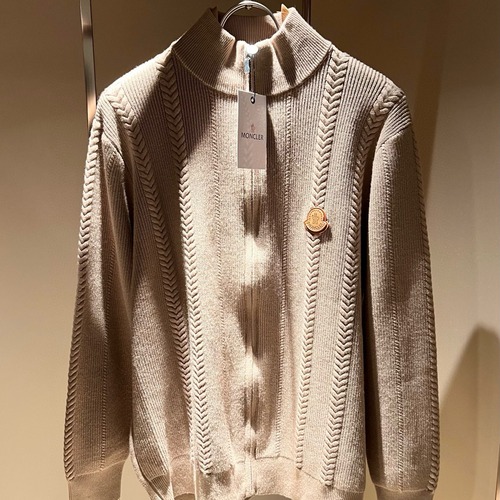 Moncler 2025 F/W 시즌 남녀공용 커플 니트 가디건으로, 최신 무역 오더라인 제품입니다. 고급 울 혼방 니트 소재를 사용해 부드럽고 입체감 있는 짜임이 특징이며, Moncler 로고 자수 패치로 포인트를 주었습니다.