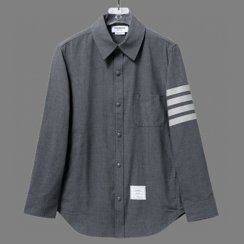 톰브라운의 양모 혼방 셔츠입니다. 팔 부분에 톰브라운의 시그니처인 삼선 디자인이 돋보입니다.
