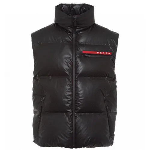 프라다 24SS 신상 다운 베스트는 프리미엄 구스다운 충전재와 시그니처 레드 라인 로고 디테일이 돋보이는 남녀공용 아이템입니다.