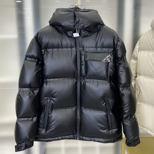 프라다의 테크니컬 패딩 다운 자켓입니다. 블랙 색상의 압착 고압 버전으로 제작되었으며, 겨울 시즌에 적합한 아이템입니다.