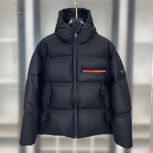 프라다의 테크니컬 패브릭 다운 패딩 자켓입니다. 고품질의 거위털 충전재를 사용하여 뛰어난 보온성을 제공하며, 가볍고 편안한 착용감을 자랑합니다.