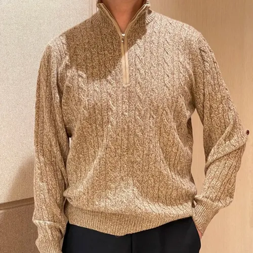 이 제품은 Loro Piana의 SS25 시즌 신상으로, 100% 순수 양모 소재로 제작된 하이넥 케이블 니트입니다. 따뜻하면서도 세련된 디자인으로 가을·겨울 시즌에 이상적이며, 봄까지 활용 가능한 실용적인 아이템입니다. 깔끔한 지퍼 디테일과 고급스러운 케이블 짜임으로 고유의 존재감을 드러냅니다.