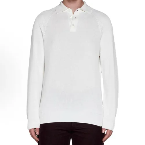 Brunello Cucinelli 순면 긴팔 니트 폴로셔츠 남성용 (화이트)