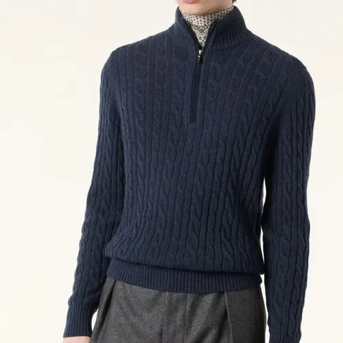 Loro Piana의 남성 하프집업 케이블 니트 스웨터.