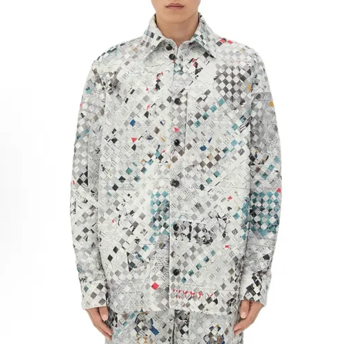 보테가 베네타(Bottega Veneta)의 개성 있는 신문 프린트 디자인이 돋보이는 양가죽 셔츠 자켓입니다. 100% 양가죽 소재로 제작되어 고급스러우며, 봄·가을 시즌에 착용하기 좋은 두께감입니다. 깔끔한 싱글 버튼 여밈과 날렵한 카라 디자인이 더해져 세련된 실루엣을 연출합니다. 유니크한 패턴으로 개성을 살리면서도 다양한 코디에 매치 가능한 아이템입니다.