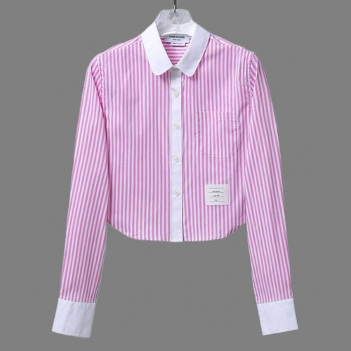 Thom Browne 톰 브라운 TB 여성 핑크 스트라이프 크롭 셔츠