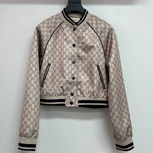 구찌의 25년 가을/겨울 신상으로 출시된 GG 패턴 블루종 재킷입니다. 클래식한 GG 로고 패턴이 전면에 프린트되어 있어 고급스러움을 더합니다.