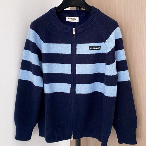 Miu Miu 미우미우 25 신상 로고 스트라이프 집업 가디건