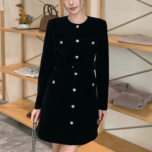 제품명 Chanel 샤넬 더블 C 버튼 벨벳 벨트 원피스