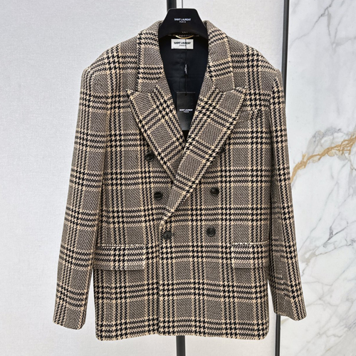 Saint Laurent 생 로랑 체크 더블 브레스티드 재킷 665375