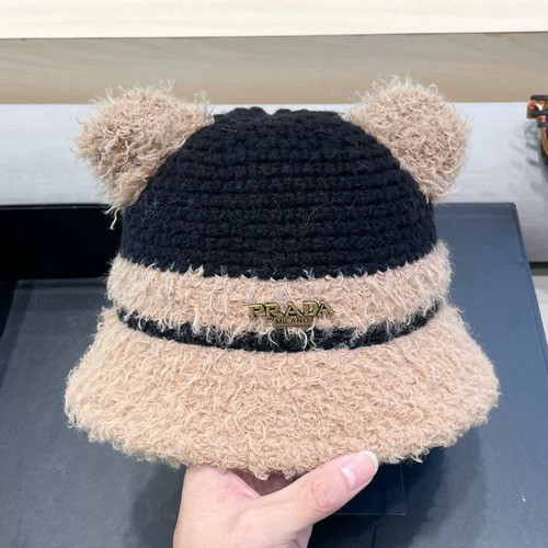 PRADA 프라다 귀여운 곰돌이 니트 버킷햇 - 겨울 신상 양털 퍼모자