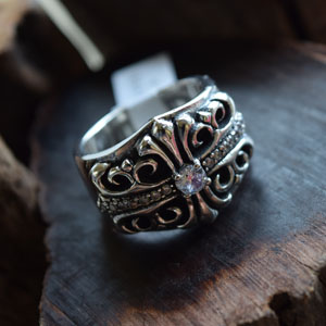 CHROME HEARTS 크롬하츠st 오리지날 925 플로랄 크로스 쥬얼반지(正品구성품포함)
