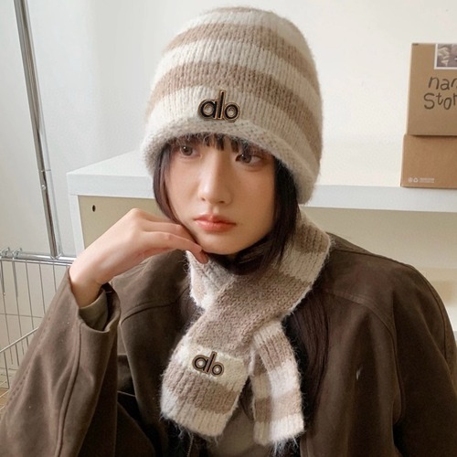 alo 알로 스트라이프 니트 모자 머플러 세트