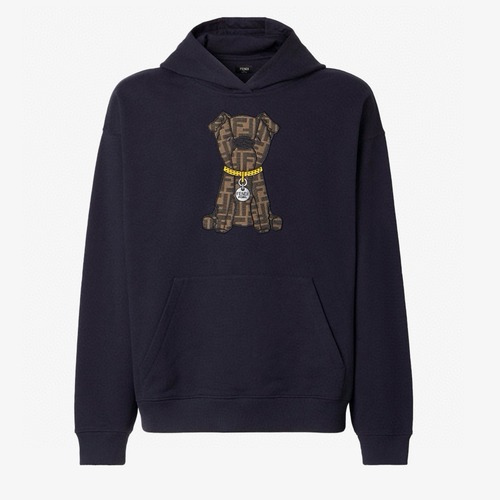 Fendi 펜디 FF 강아지 자수 네이비 후드 티셔츠