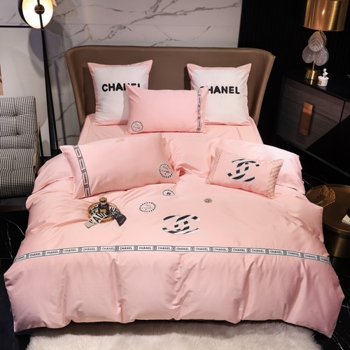 Chanel 샤넬 핑크 코튼 자수 침구 4종 세트