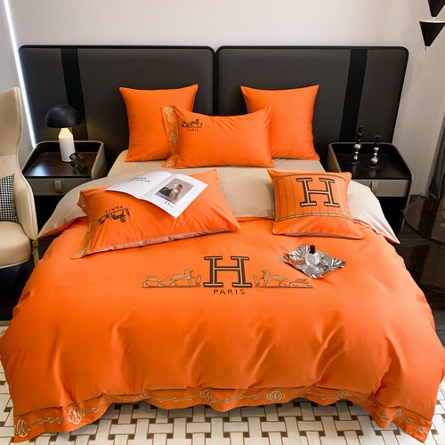 Hermes 에르메스 오렌지 자수 사인 침구 4종 세트