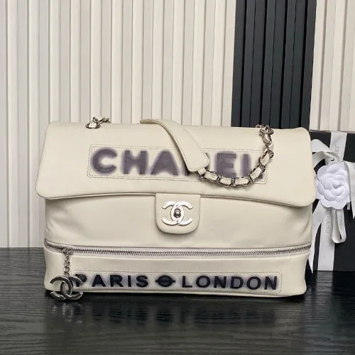 Chanel 샤넬 빈티지 익스팬더블 플랩 파리스 런던 숄더백 화이트 36cm 9902