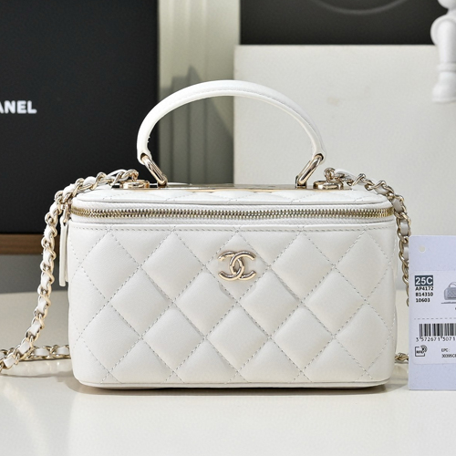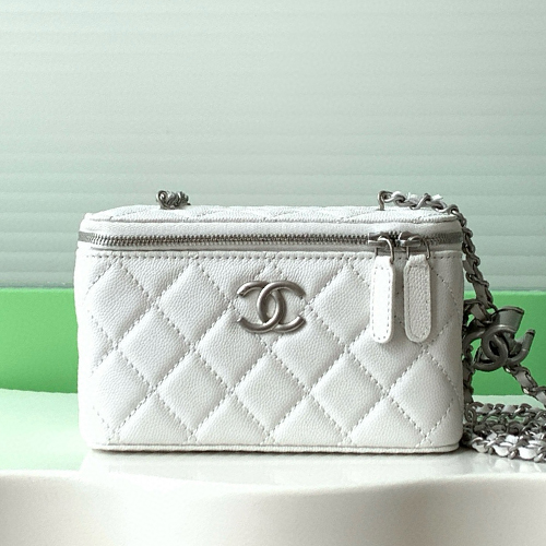 CHANEL 샤넬 25B 시즌 화이트 캐비어 더블C 로고 탑핸들 뷰티 박스백 AP4799