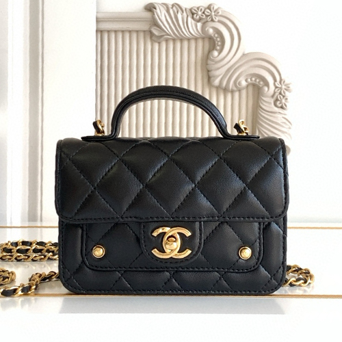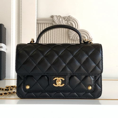 CHANEL 샤넬 25B 램스킨 더블 C 탑핸들 라지 플랩백 AP4674 19CM