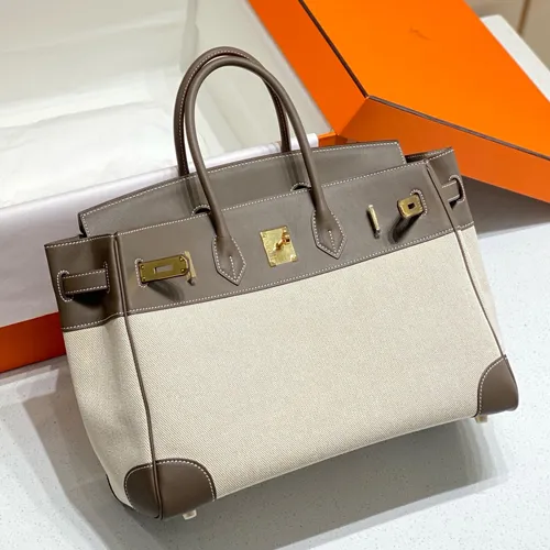 Hermes 에르메스 버킨 35 Swift 가죽 & 캔버스 빈티지 카키 금장
